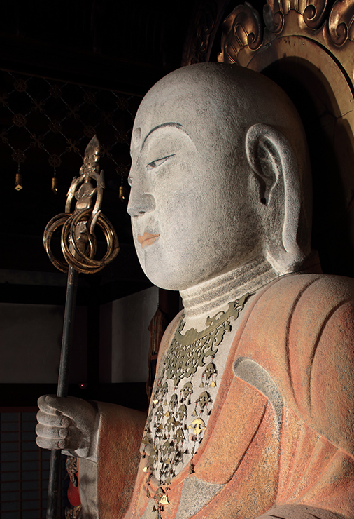 Koyasu Enmei is a depiction of the bodhisattva Jizo, savior of sentient beings and protector of children. This statue, the principal object of worship at Shorinji, is modeled after a wooden version created by the Buddhist monk Monshun in the eighteenth century. At the time, many women in his area suffered from difficult childbirths, including his own sisters. Monshun set out on a pilgrimage across Japan to pray for them, carrying the wooden sculpture on his back for more than four years. When his pilgrimage was over, Monshun donated the statue to Shorinji, where it became the basis for the present granite version. Even today, it draws female worshippers praying for safe childbirth.